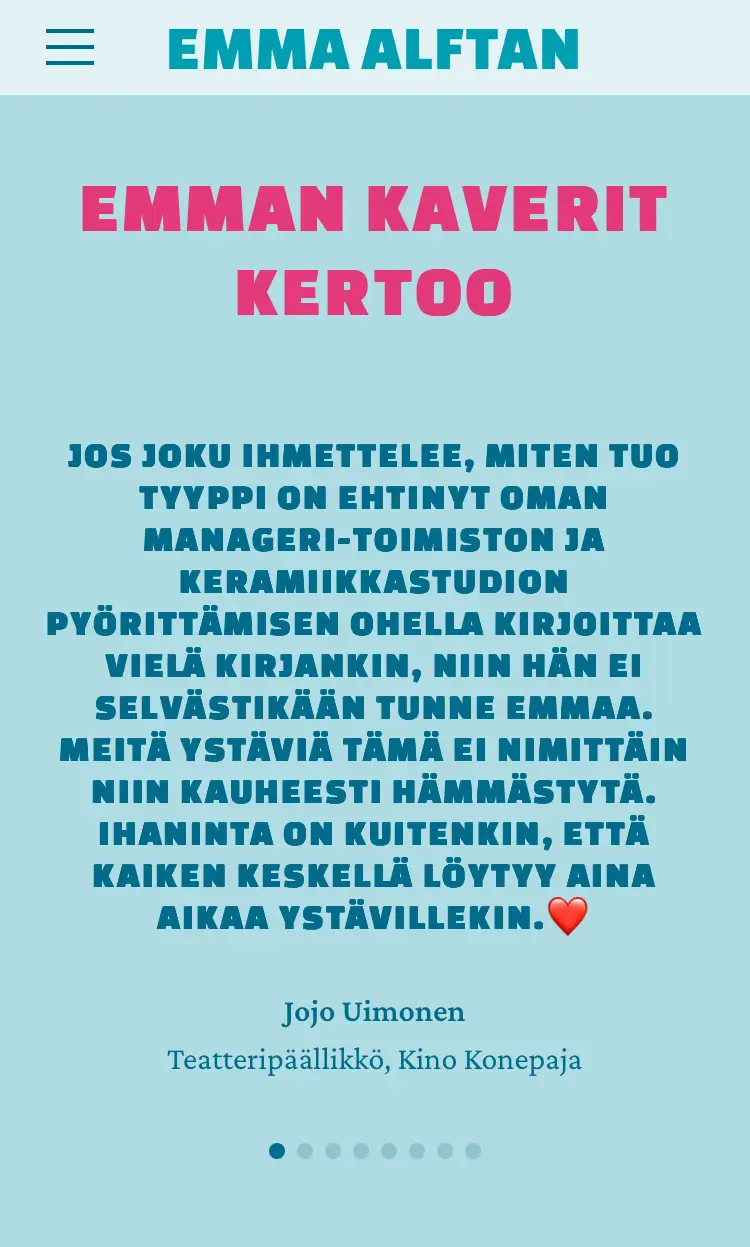 Emma on kaiken muun toimeliaisuutensa lisäksi myös kirjailija.